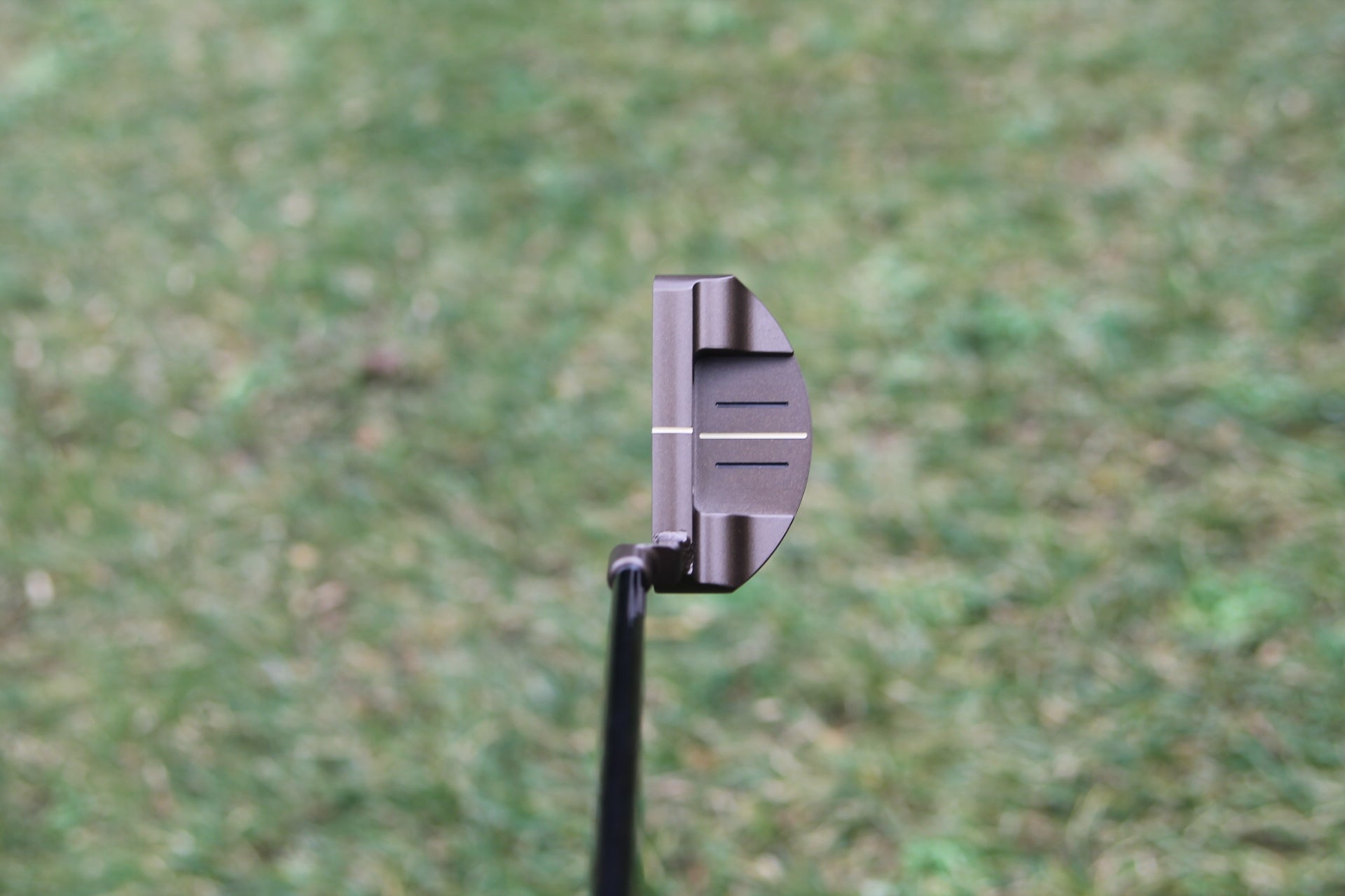This beautiful Bobby Grace Jordan putter is made in the USA. These are milled from a solid piece of 303 Stainless Steel. This one of a kind putter features a welded 3 Diamond neck (Standard Plumbers Neck.) This putter has a 360g headweight and a super sick Burnt Bronze finish (normally a $200 upgrade.) We can make this headweight either heavier or lighter via the sole weights; just let us know if you would like a different headweight. This Jordan features the HSM Radial Face Insert, this one has the medium stiffness face insert, which can be changed if desired. The secret to this putter is this innovative insert, which is proven to get the ball rolling faster and purer. Don't believe us? Give it a shot and if not we will give you your money back. Thats how confident we are in these putters. This putter is brand new and has never seen the course however does have a little shop wear on the neck, this is priced accordingly.