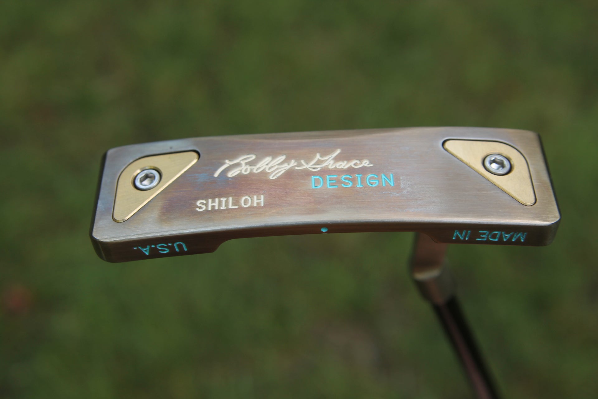 This stunning Bobby Grace Shiloh is made in the USA and is milled from a solid piece of 303 Stainless Steel. This one of a kind Bobby Grace putter features a Welded Short Slant neck, 360g headweight and a sick Burnt Bronze finish. This Shiloh features the Innovative Radial Face Insert, this one has the Aluminum insert. The secret to this putter is this innovative insert, which is proven to get the ball rolling faster and truer. This putter is new and never used.