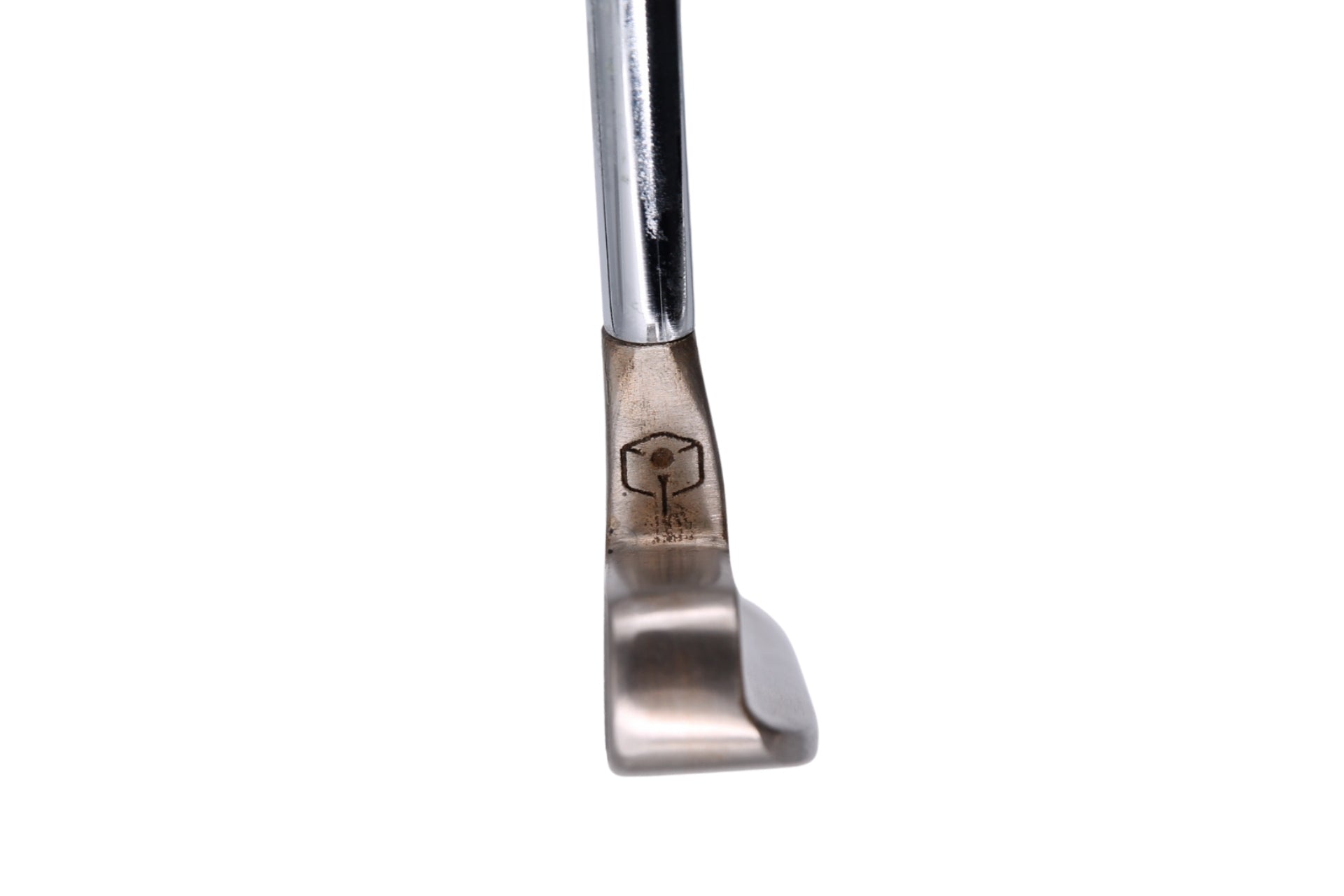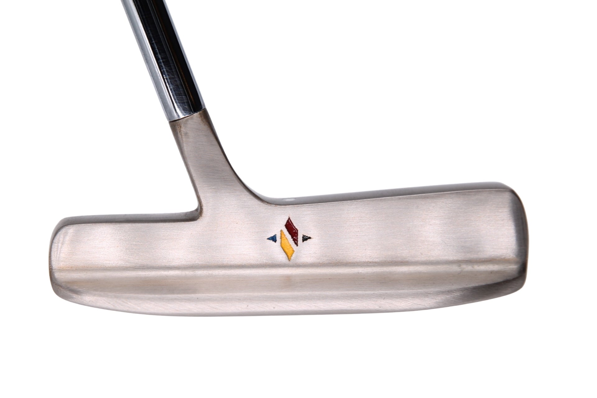 This beautiful piece features a hand polished satin finish and a laser etched stainless steel face insert. These putters are 3D printed in a bronze/stainless Steel alloy and are internally packed with high density tungsten and low density aircraft grade aluminum. The result is a putter with a significantly higher MOI - around 25% higher than a normal blade putter. This is brand new and never used.