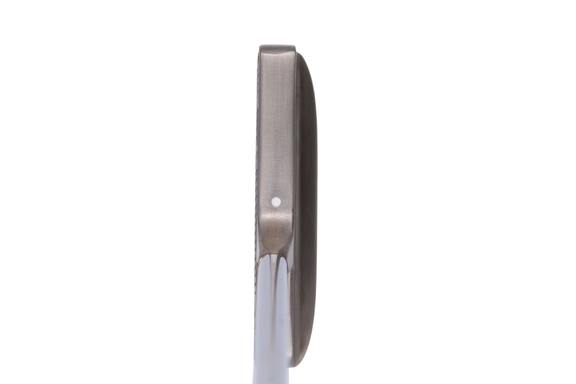 This putter has full toe hang and no offset. This beauty was finished off with a Lamkin Deep Etch grip. It is currently set to 34” with a 70 degree lie angle and 3 degrees of loft. If you prefer a different loft or lie, contact us to place a special order. -