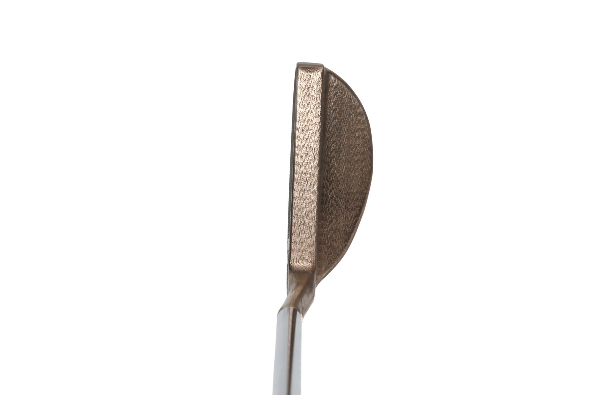 This beautiful piece features a laser etched insert. These putters are 3D printed in a bronze/stainless Steel alloy and are internally packed with high density tungsten and low density aircraft grade aluminum. The result is a putter with a significantly higher MOI around 25% higher than a normal blade putter. This is brand new and never used.