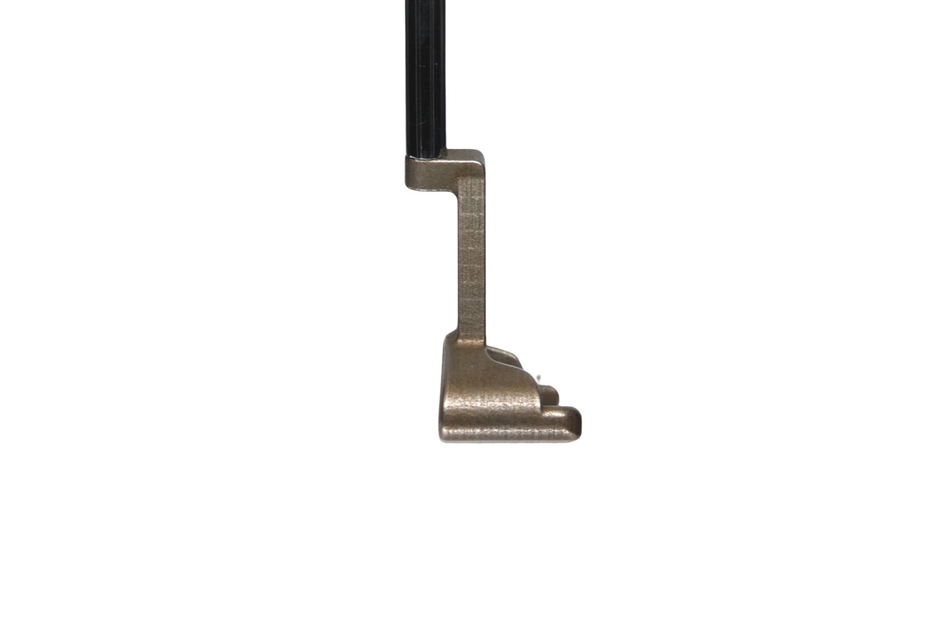 This putter has nearly half toe hang and full offset. This beauty was finished off with a Chrome Shaft and Super Stroke PistolGT 1.0 grip. It is currently set to 35” with a 70 degree lie angle and 3 degrees of loft. If you prefer a different loft or lie, contact us to place a special order. -