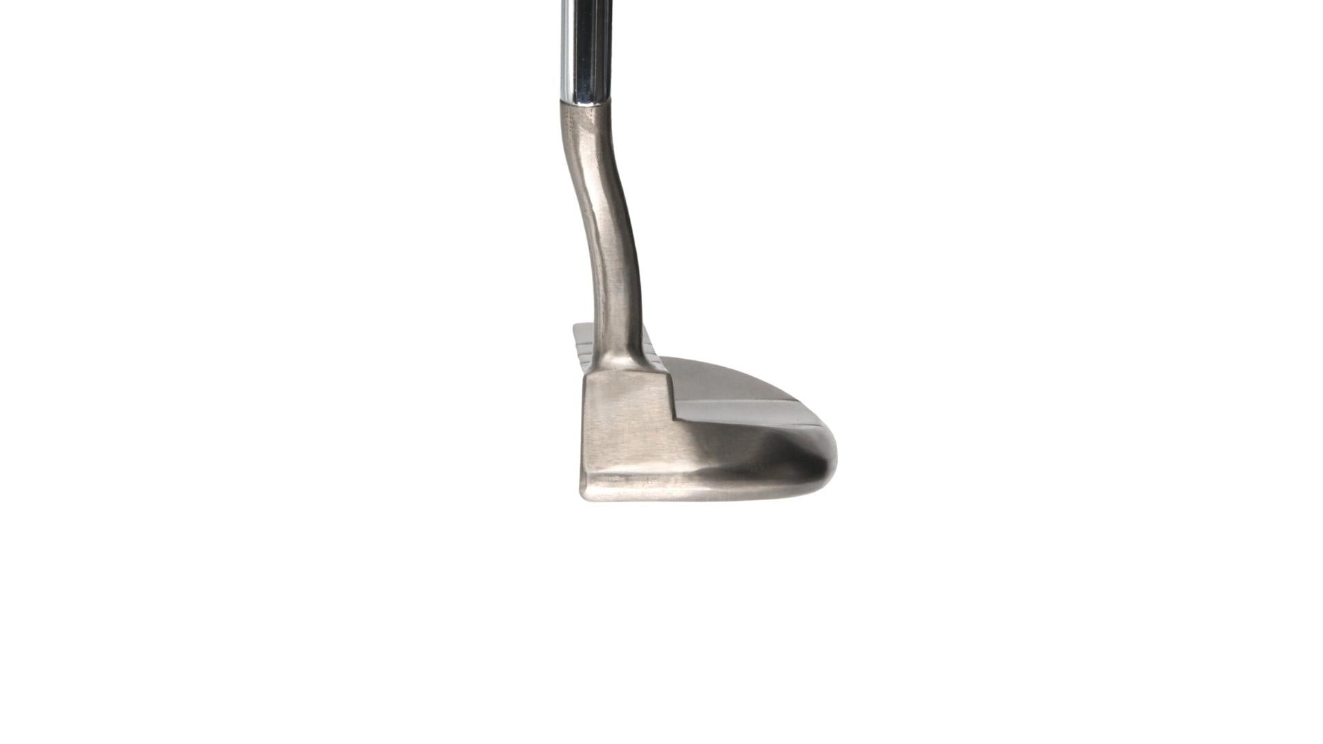This putter has 1/2 toe hang and 1/2 offset. This beauty was finished off with a Chrome Shaft and Lamkin Deep Etch grip. It is currently set to 35” with a 70 degree lie angle and 3 degrees of loft. If you prefer a different loft or lie, contact us to place a special order.