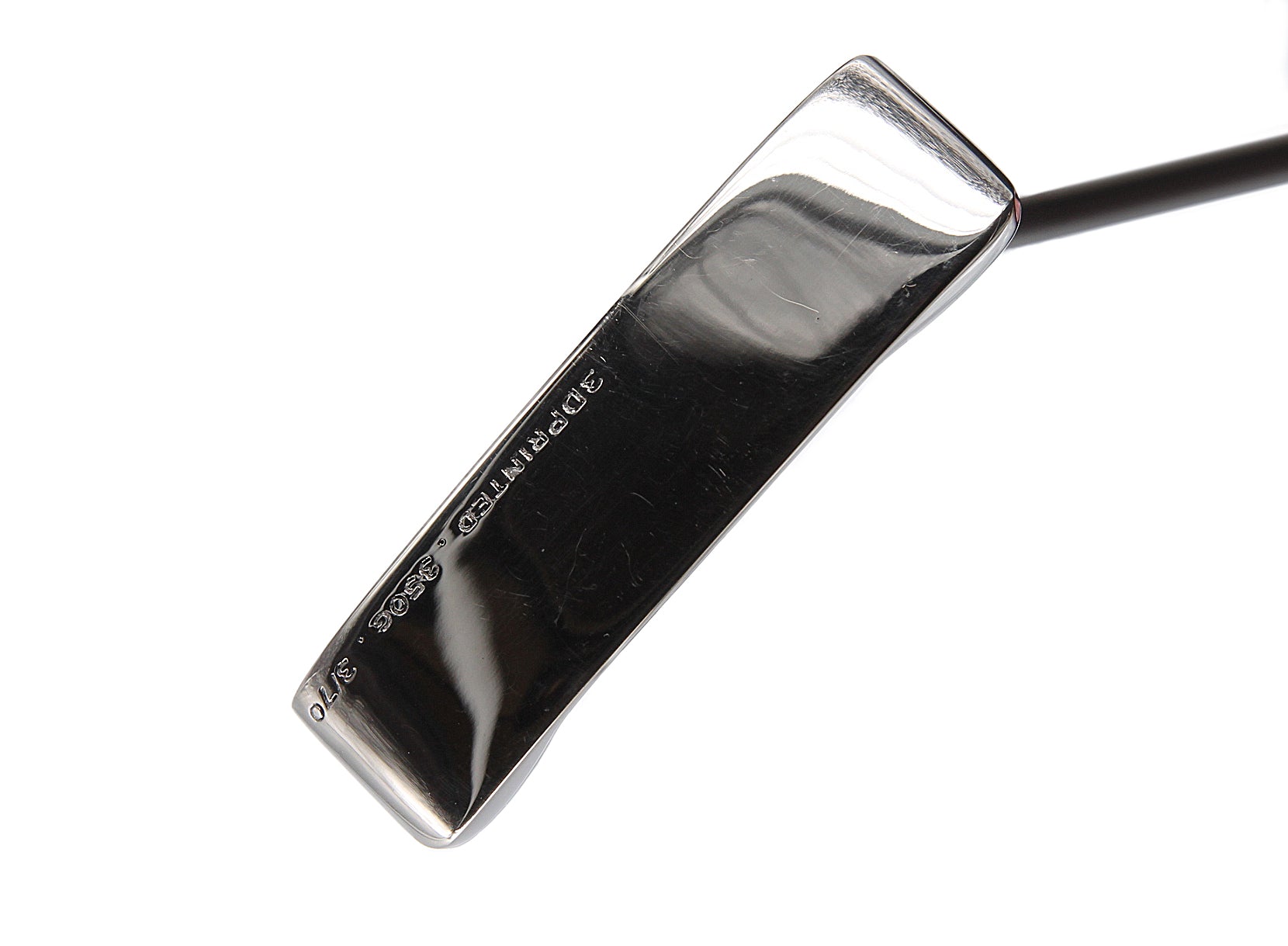 This beautiful piece features a hand plated nickel finish and a laser milled titanium face insert. These putters are 3D printed in a bronze/stainless Steel alloy and are internally packed with high density tungsten and low density aircraft grade aluminum. The result is a putter with a significantly higher MOI around 25% higher than a normal blade putter. This is brand new and never used however due to the 3d printed material it does show some marks that look very similar to shop wear. This is priced accordingly.