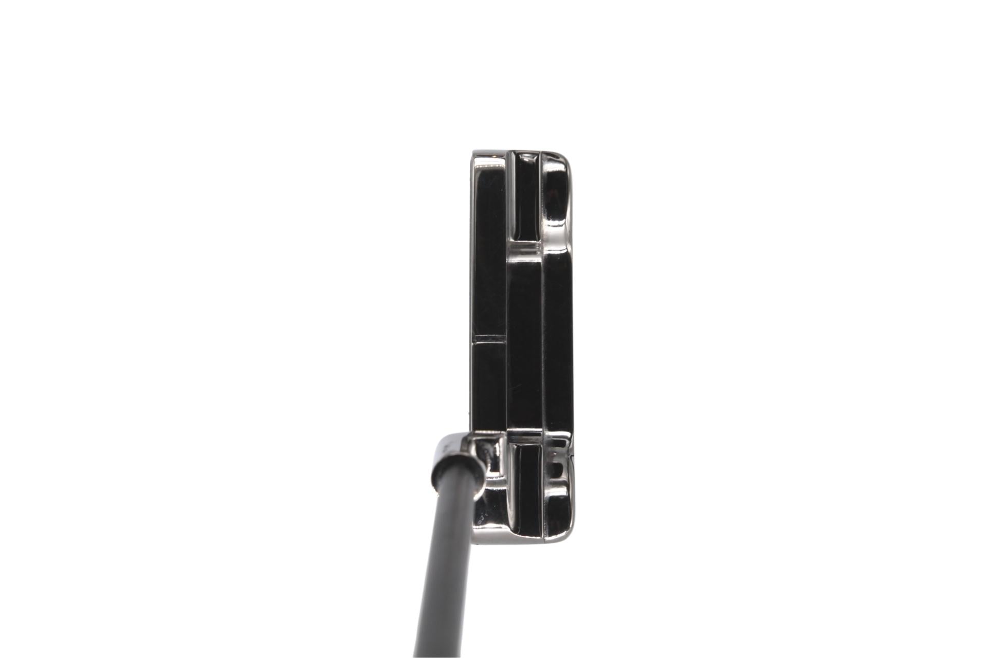 This putter has full toe hang and 1/2 offset. This beauty was finished off with a Matte Black Shaft and Lamkin Deep Etch grip. It is currently set to 34” with a 70 degree lie angle and 3 degrees of loft. If you prefer a different loft or lie, contact us to place a special order. -