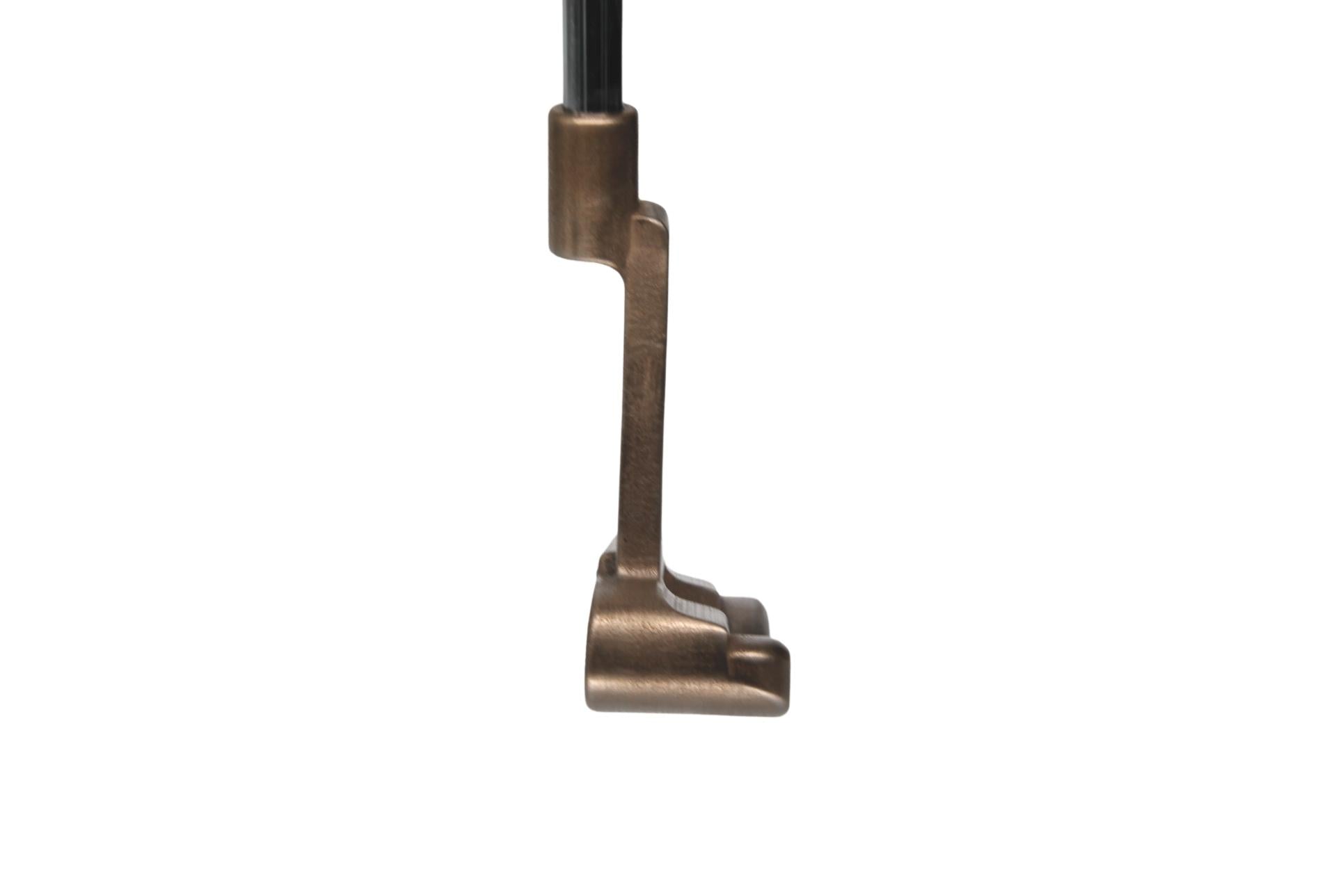 This putter has nearly full toe hang and 1/2 offset. This beauty was finished off with a Chrome Shaft and Lamkin Deep Etch grip. It is currently set to 34” with a 70 degree lie angle and 3 degrees of loft. If you prefer a different loft or lie, contact us to place a special order.