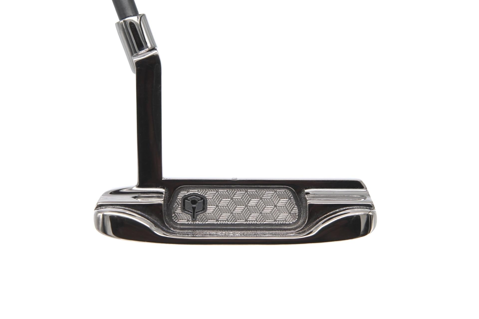 This beautiful piece features a hand plated nickel finish and a laser milled titanium face insert. These putters are 3D printed in a bronze/stainless Steel alloy and are internally packed with high density tungsten and low density aircraft grade aluminum. The result is a putter with a significantly higher MOI, around 25% higher than a normal blade putter. This is brand new and never used however due to the 3d printed material it does show some marks that look very similar to shop wear. This is priced accordingly.