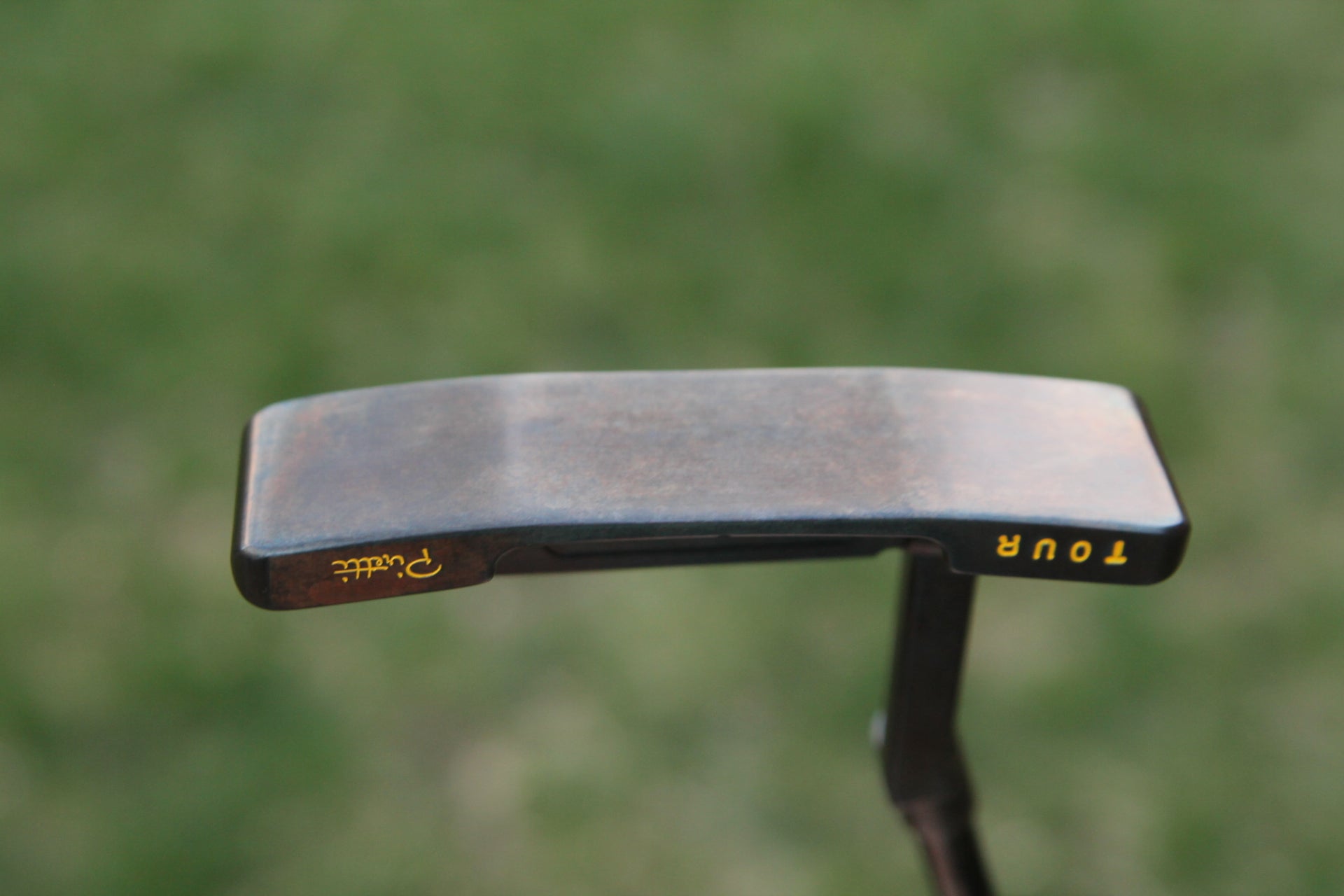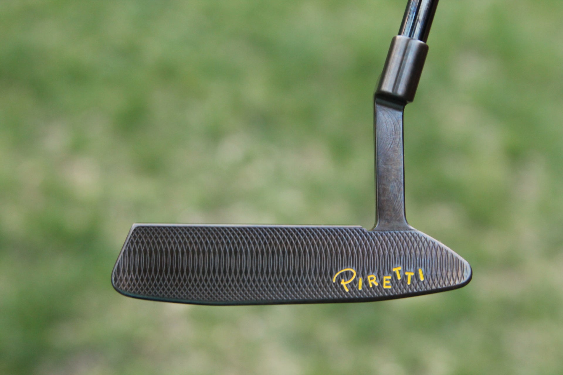 This astonishing Piretti Tesora features a mid milled face with a dancing Piretti stamp. This putter is made of 11L17 Soft Carbon Steel and has an amazing oil can finish and features a tri sole. Unique Piretti stampings in the cavity and then Tour Piretti on the bumpers. This is the first Tesora Oil Can we have ever seen and is brand new and never used.