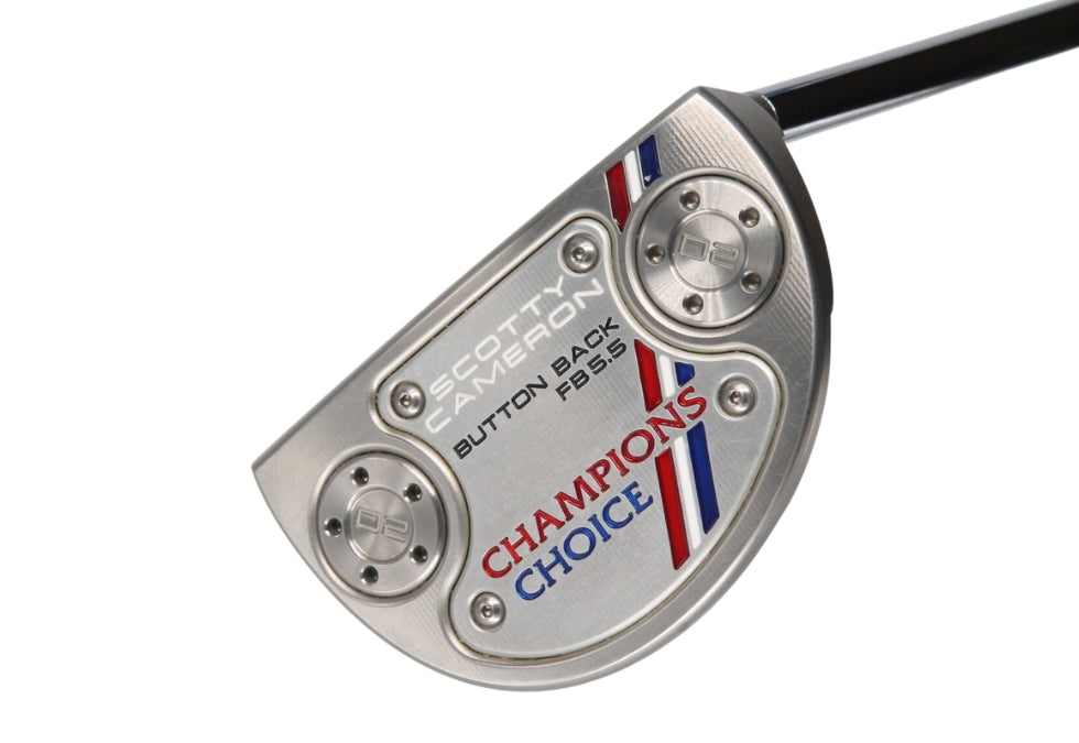This stunning Scotty Cameron Champions Choice FB 5.5 Buttonback putter features a Teryllium alloy inlay and is based on the putter style trusted to back-to-back U.S. Open victories in 2017 and 2018. This putter is used, 8 out of 10.
