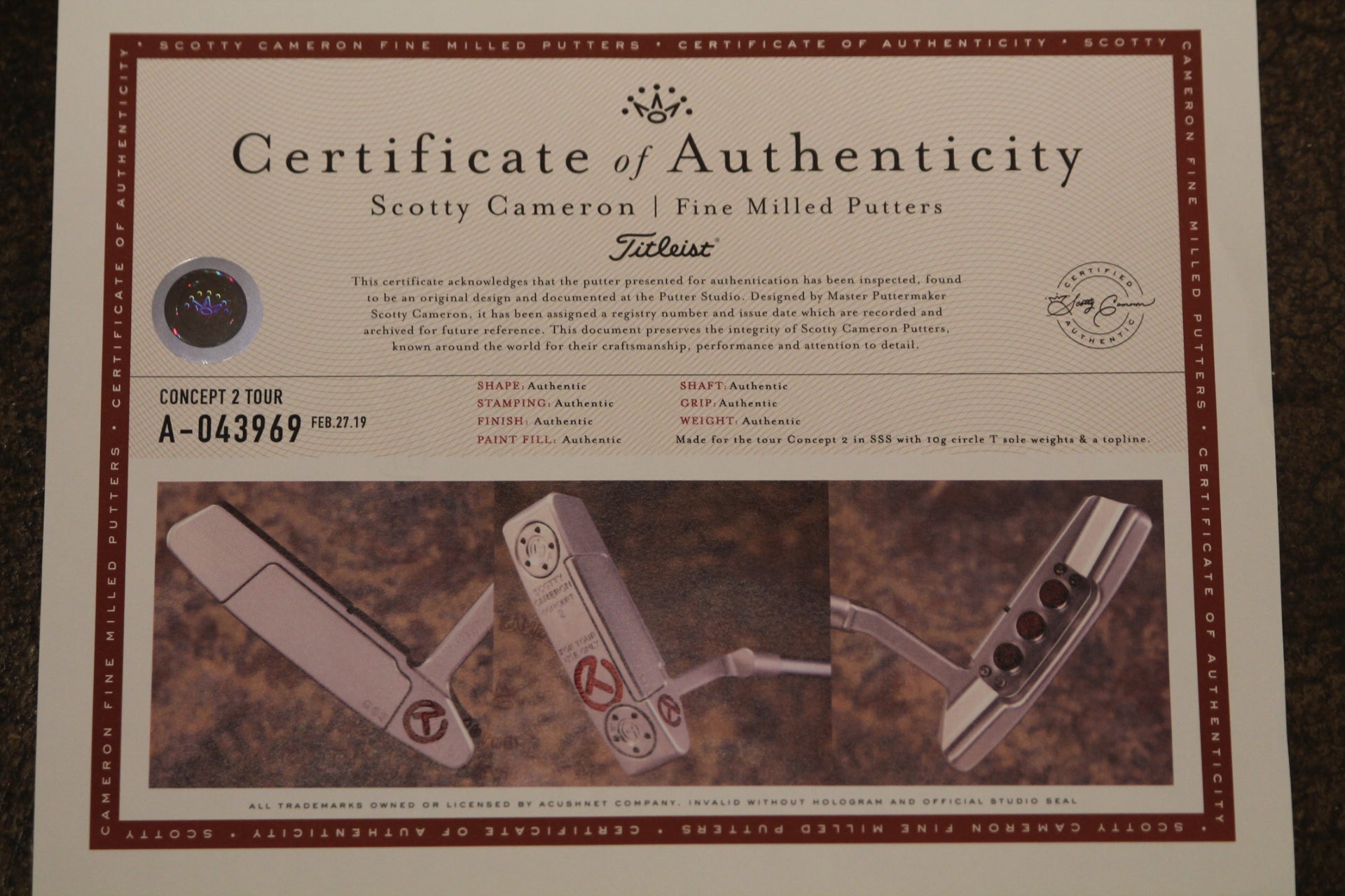This stunning Scotty Cameron Concept 2 putter features a rare GSS inlay and top line. This is in used condition, 8.5 out of 10.