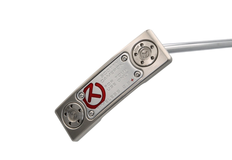 This tour only Scotty Cameron Circle T Select Timeless 2.5+ Buttonback putter features a teryllium insert, FloJet neck and 10g Circle T weights. This piece is like new 9 out of 10.