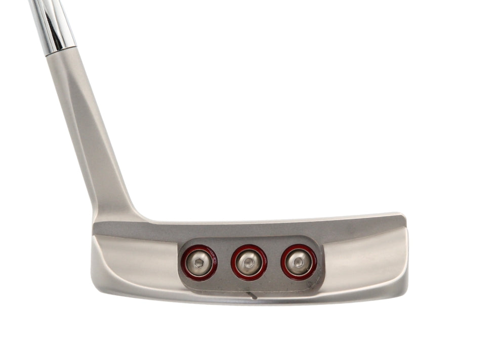 This putter has nearly full toe hang and 1/2 offset. This Tour Scotty is currently set to 35" and will come with the Circle T Johnny Racer Mid Mallet Headcover pictured and Tour Pistolero Cameron Grip. This putter can be bent to specs, so please put any modification instructions in the notes section during checkout otherwise we assume standard specs. Furthermore if you would like to swap out the Circle T weights for lighter or heavier ones (no charge) or would like to purchase Circle T weights we have 5-40g weights available as well.
