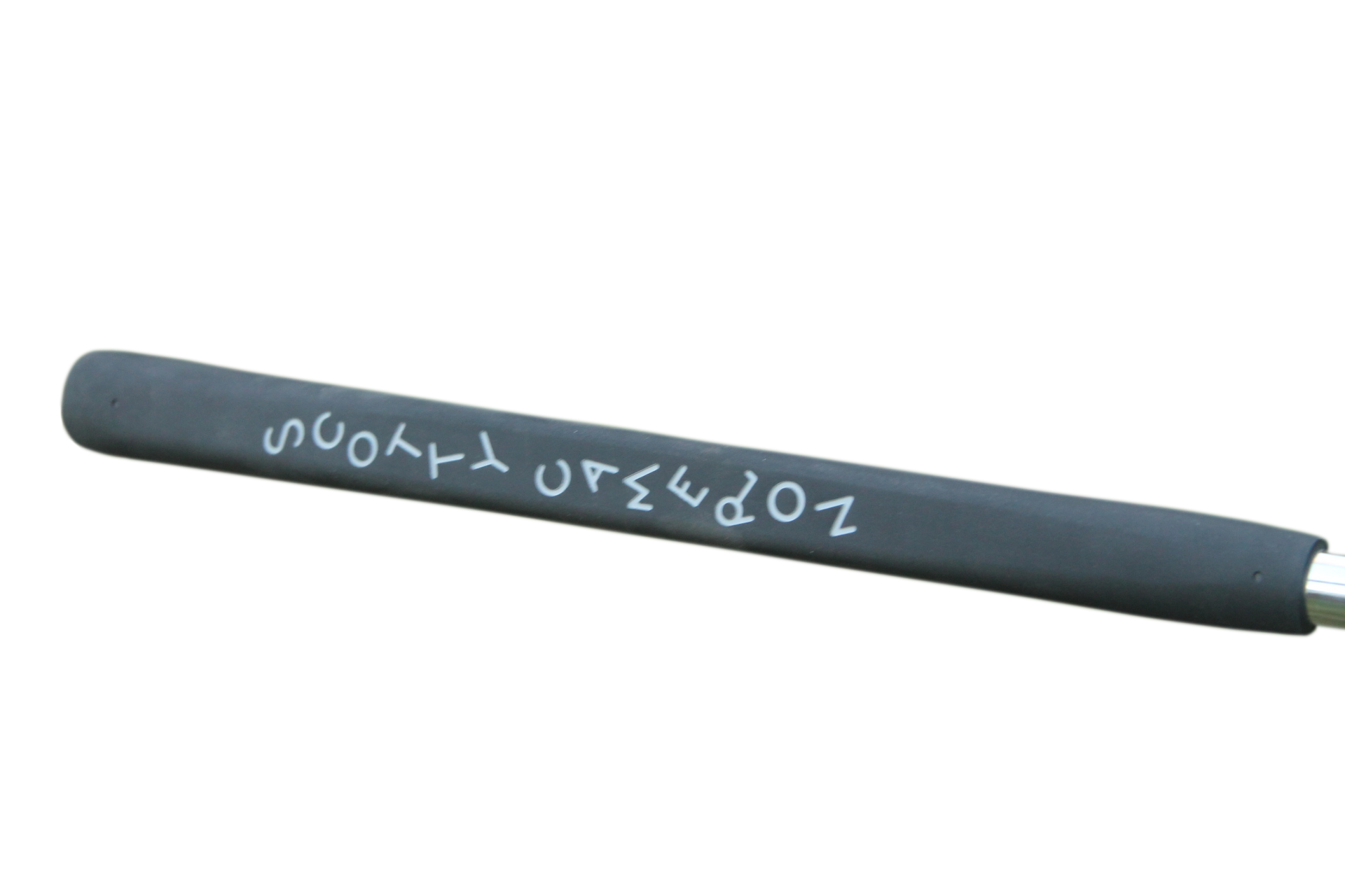This putter has no toe hang and no offset. This Tour Scotty was finished off with a Circle T Shaft and is currently set to 34" and will come with the Cinco De Mayo Luchador Round Mallet Headcover pictured and Circle T Pistolero Grip. This putter also includes an A COA (A-044136) We can bend this, no additional. Please let us know if you have any questions. -