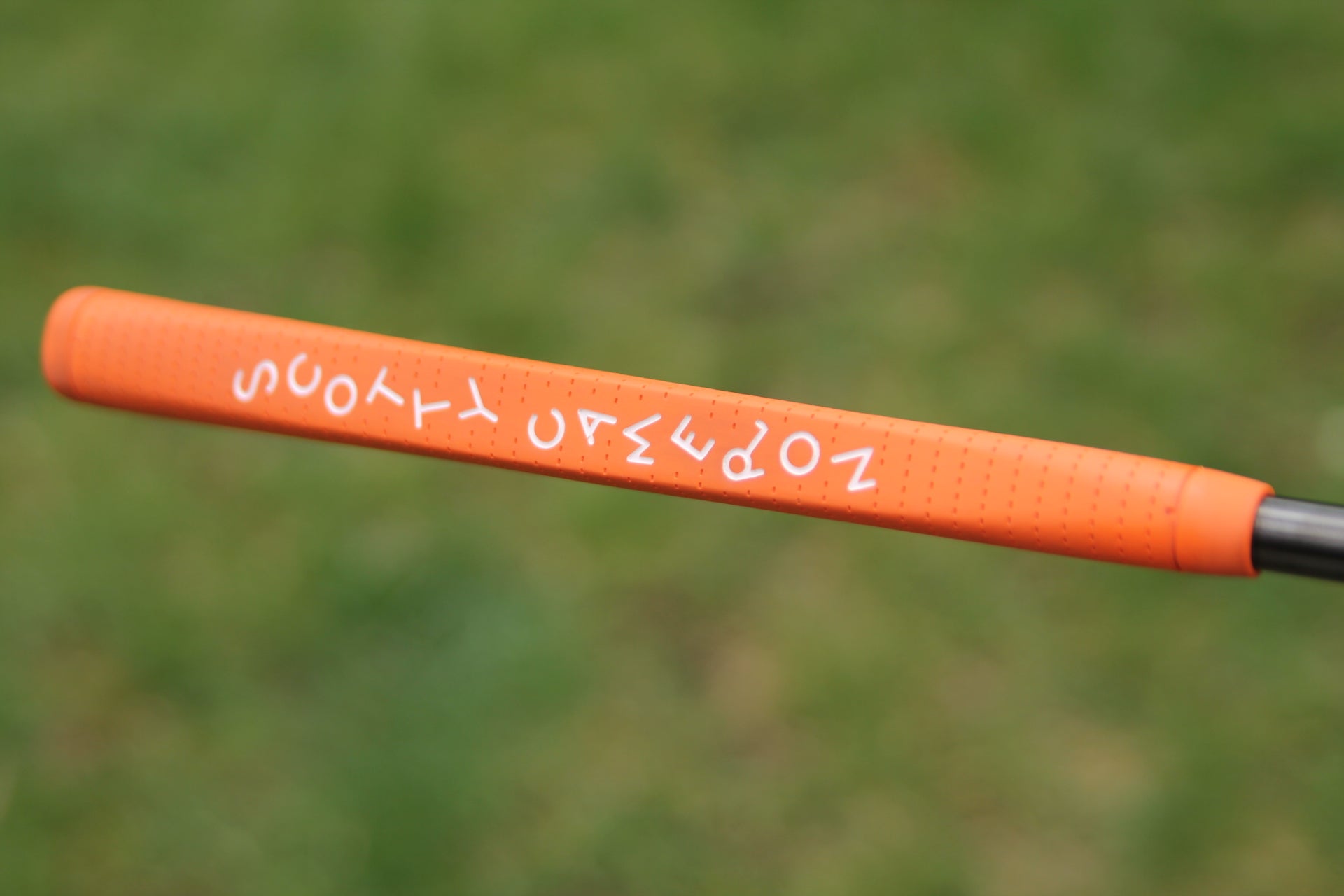 This putter has 3/4 toe hang and nearly full offset. This Tour Scotty was finished off with a Black PVD Stepless Shaft and is currently set to 34" and will come with the Circle T Headcover pictured and Cameron Grip. This putter can be bent to specs and cut to length, so please put any modification instructions in the notes section during checkout otherwise we assume standard specs.