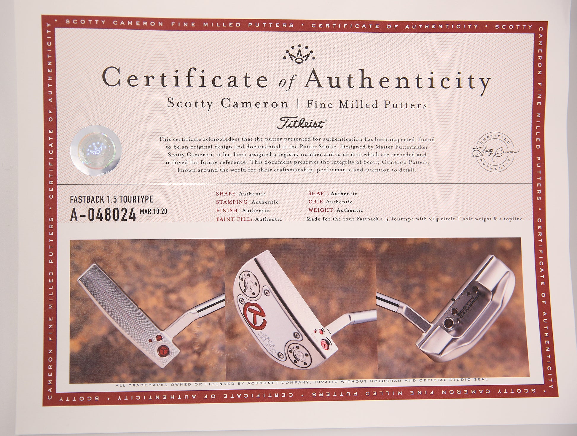 This newly released Scotty Cameron Circle T Tourtype SSS Special Select putter features a newly redesigned Fastback 1.5 head with topline, FloJet Neck and two 20g Circle T weights. This piece is brand new.