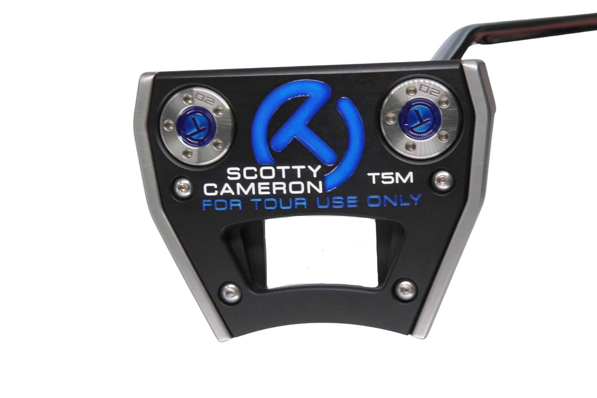 This beautiful Scotty Cameron T5M putter features a top line, 2-20g Circle T weights and a gorgeous blue paint fill. This is in good condition, 8 out of 10.