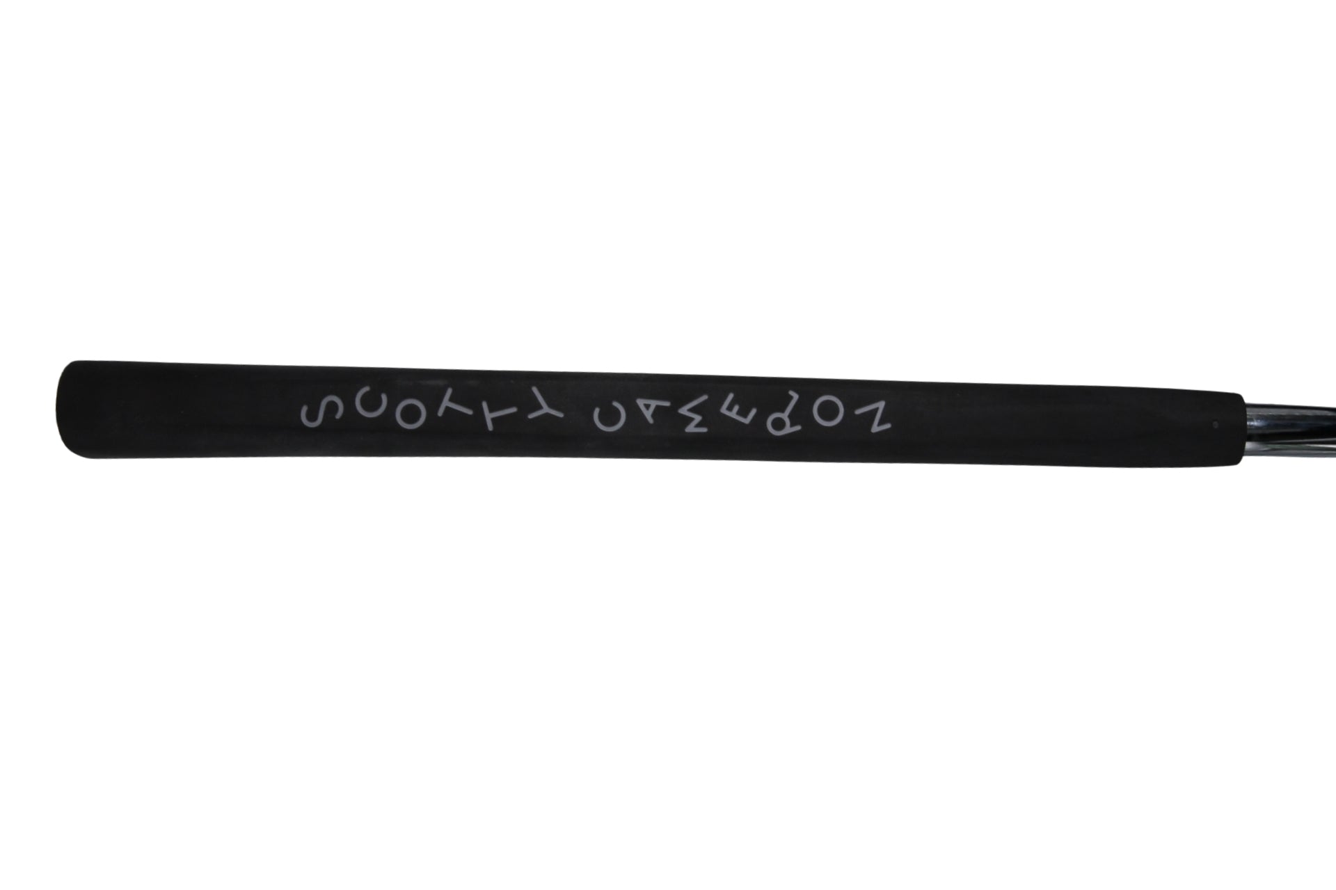 This putter has very little toe hang and 3/4 offset. This Tour Scotty is currently set to 34" and will come with the Scotty Cameron Circle T headcover pictured, Circle T Shaft, and Circle T Cameron Pistolero Grip. Please let us know if you have any questions. -
