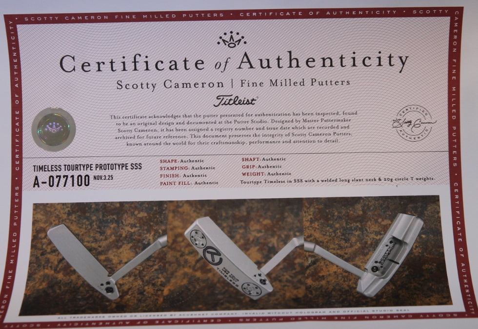 We are starting the year strong with this Scotty Cameron Circle T Tourtype Timeless prototype SSS putter featuring a welded long slant neck, rare trans smoke paintfill, flange line, and Circle T 20g weights. This putter is used, 8 out of 10 making it the perfect gamer.