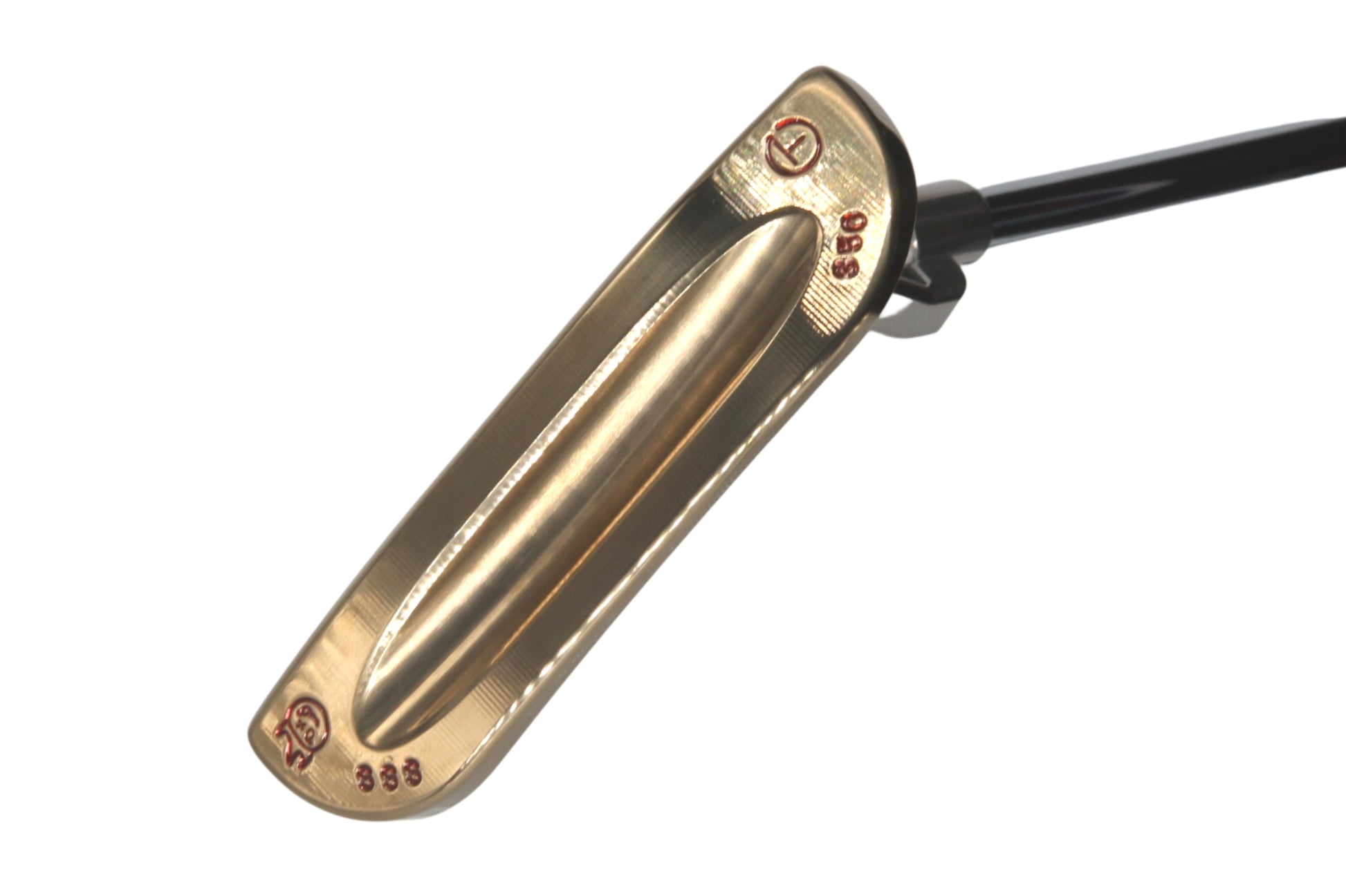 This Scotty Cameron Craftsman features a gorgeous two tone theme with a polished Plumbers Neck welded onto a beautiful Chromatic Bronze Craftsman SSS Prototype head, complete with a bullet sole and top sight line. This beauty is 350g and features some rare stamping including Hot Head Harry on the sole. This is new and never used.