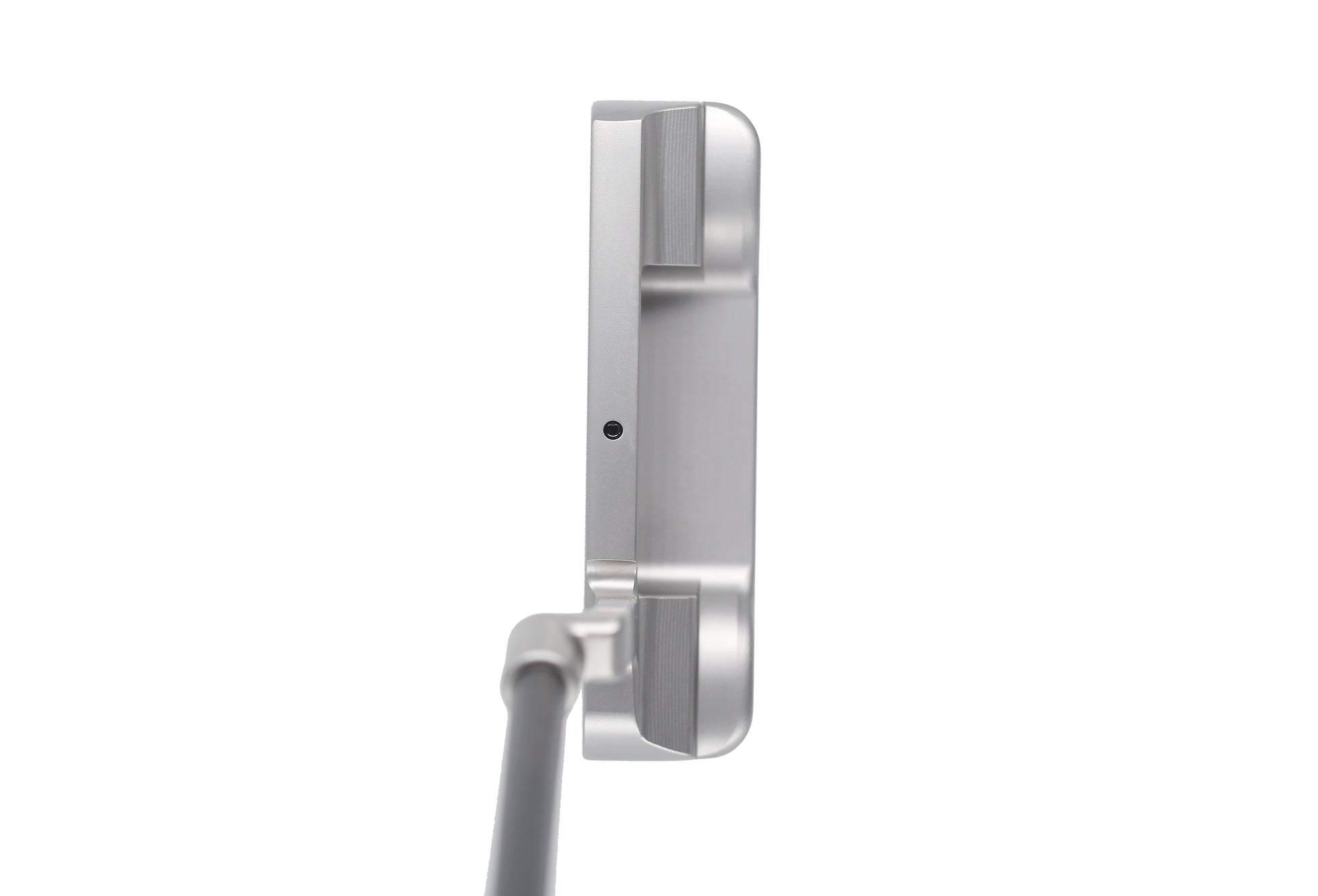 At address, the crowned topline seems to melt into the shoulders and by surfacing the shoulders on a large organic curve they in turn make a smooth transition into our bumpers. Spending extra time during the machining process allows us to create a neck with a consistently soft profile unlike any other on the market.