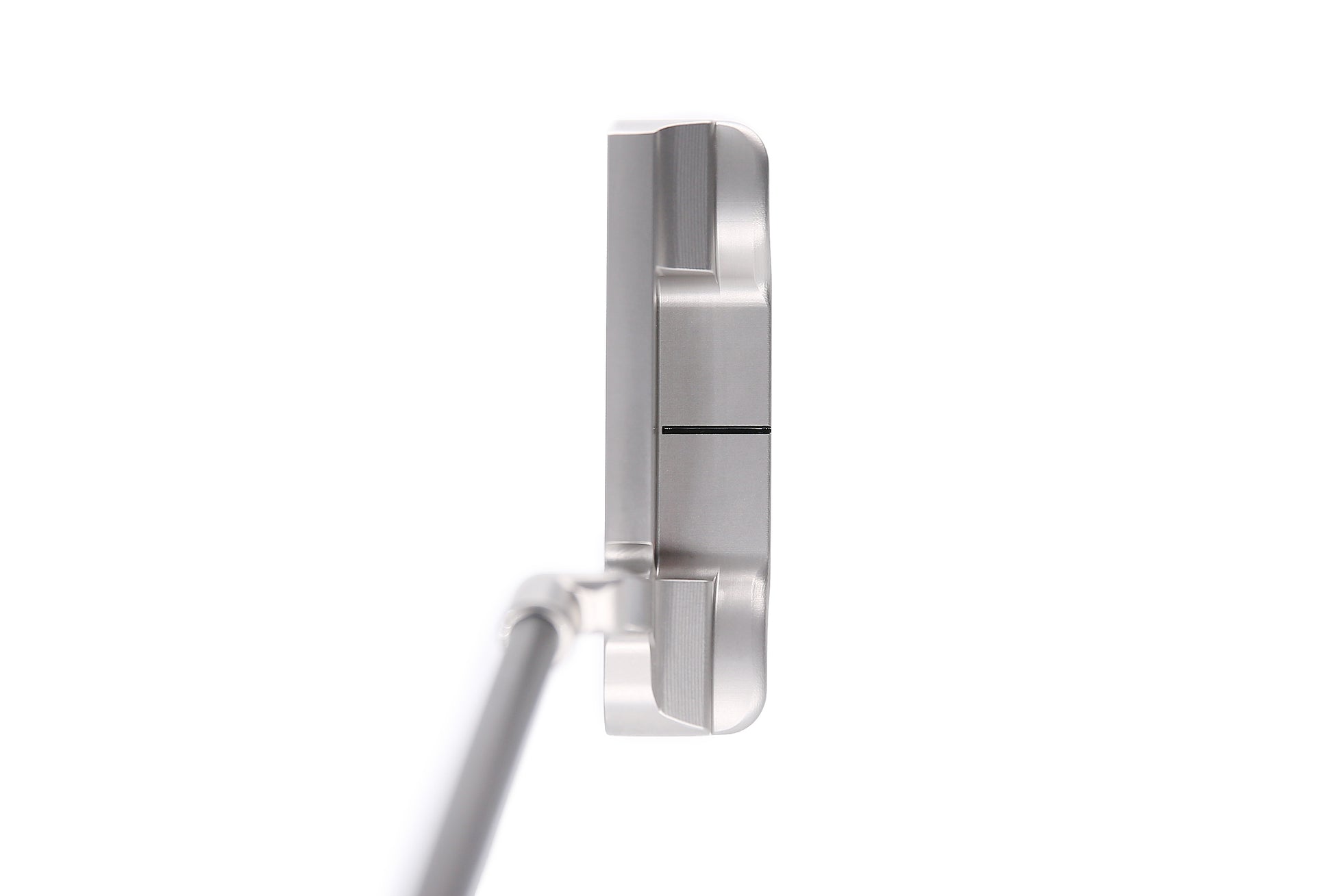 At address, the crowned topline seems to melt into the shoulders and by surfacing the shoulders on a large organic curve they in turn make a smooth transition into our bumpers. Spending extra time during the machining process allows us to create a neck with a consistently soft profile unlike any other on the market.