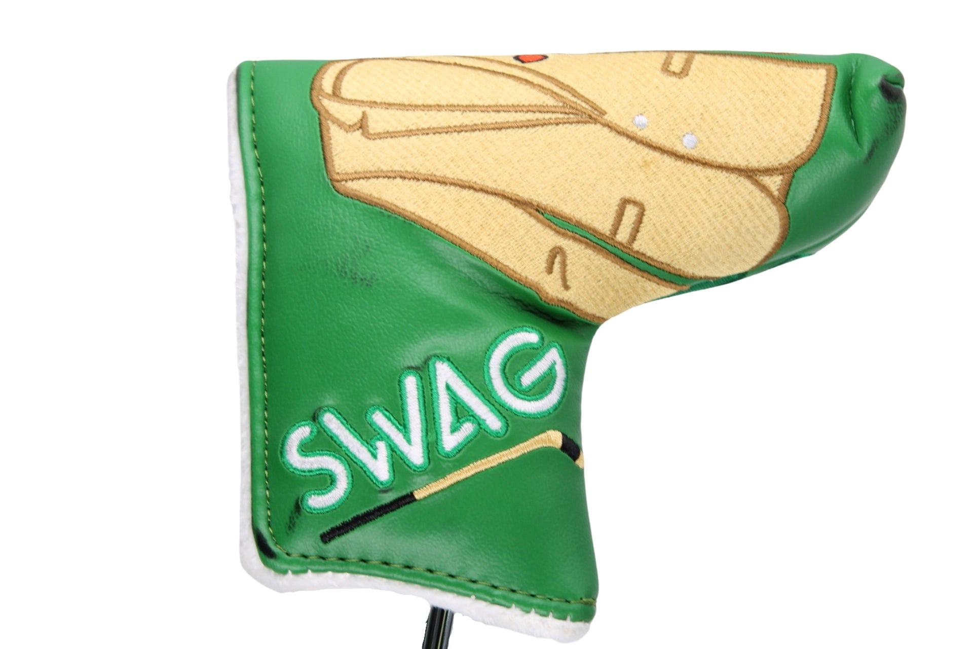 This putter is has 1/2 toe hang and full offset. This Swag is currently set to 34.5" and comes with a Swag Green Jacket Headcover and Black Swag Gripmaster Grip. This putter can be bent to specs, so please put any modification instructions in the notes section during checkout, otherwise we assume standard specs.