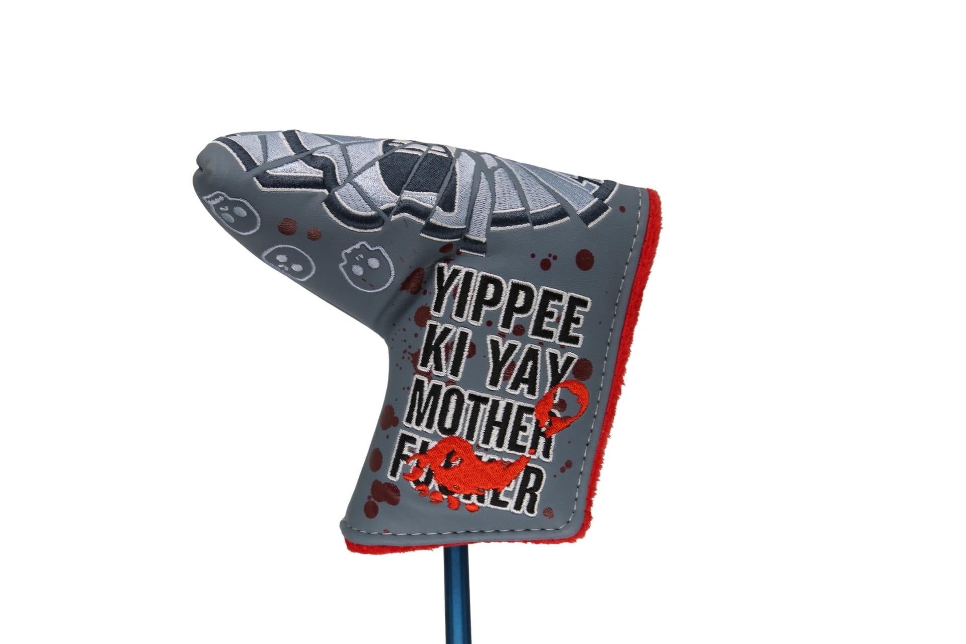Swagmas is here and we're starting it off with a bang. Introducing the Yippee Ki Yay Handsome One. Featuring engravings inspired by our favorite Swagmas movie, a matte blue shaft, custom deep red Cabretta leather grip, and one of the sickest headcovers we've ever made to complete the look. Meet your new favorite putter.