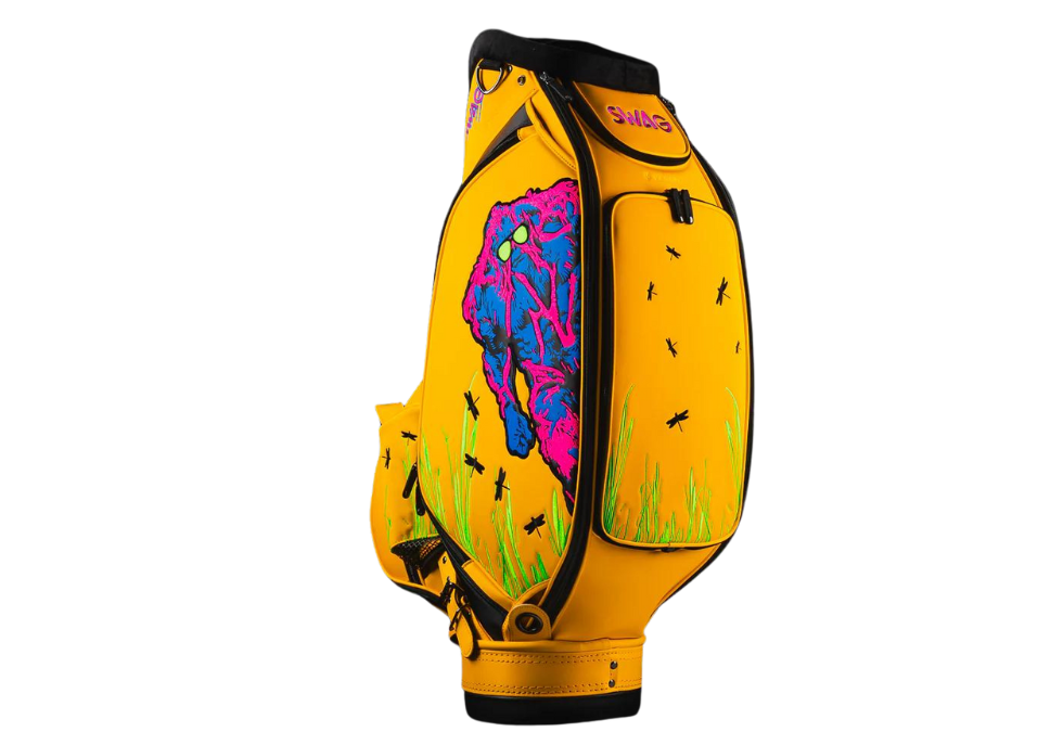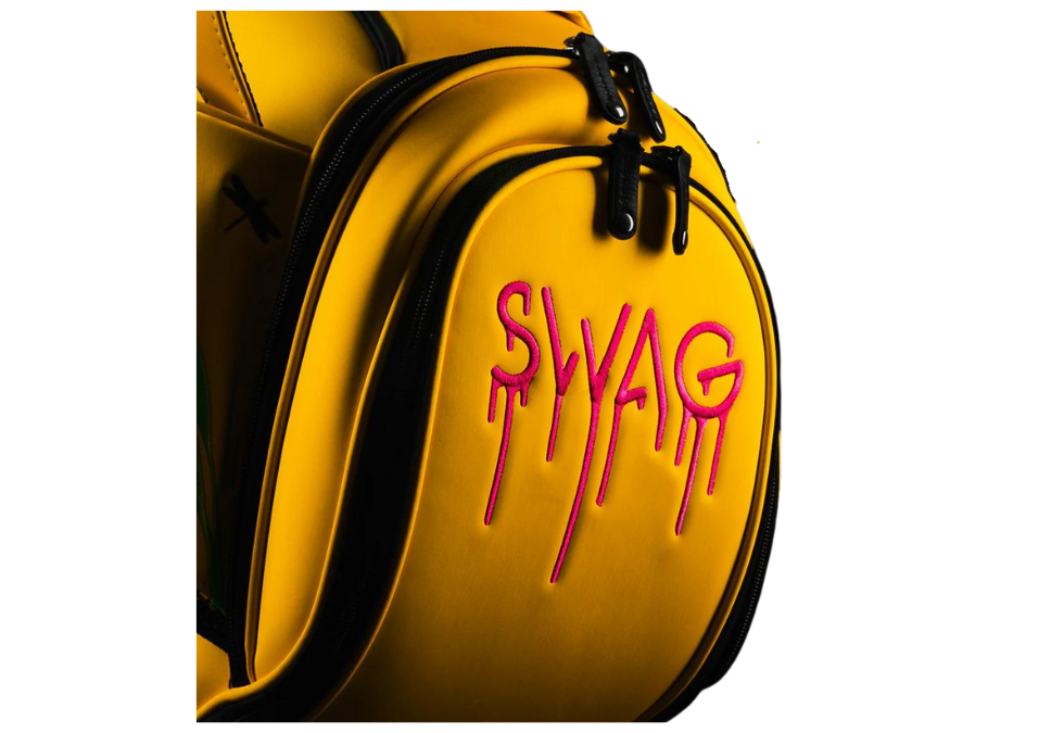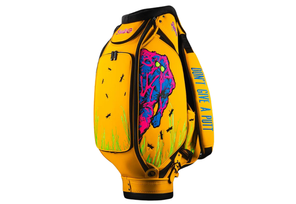 A truly rare item for the most enthusiastic Swag fans, this PGA Tour-modeled staff bag is built with yellow matte panels that feature SWAG branding. An impeccably stitched Swag Thing on the side makes this bag impossible to miss. Whether you are a +2 handicap or a 28 handicap, as long as you live by the SWAG mantra "Don't Give A Putt" on the strap, gaming this bag should not be a problem!