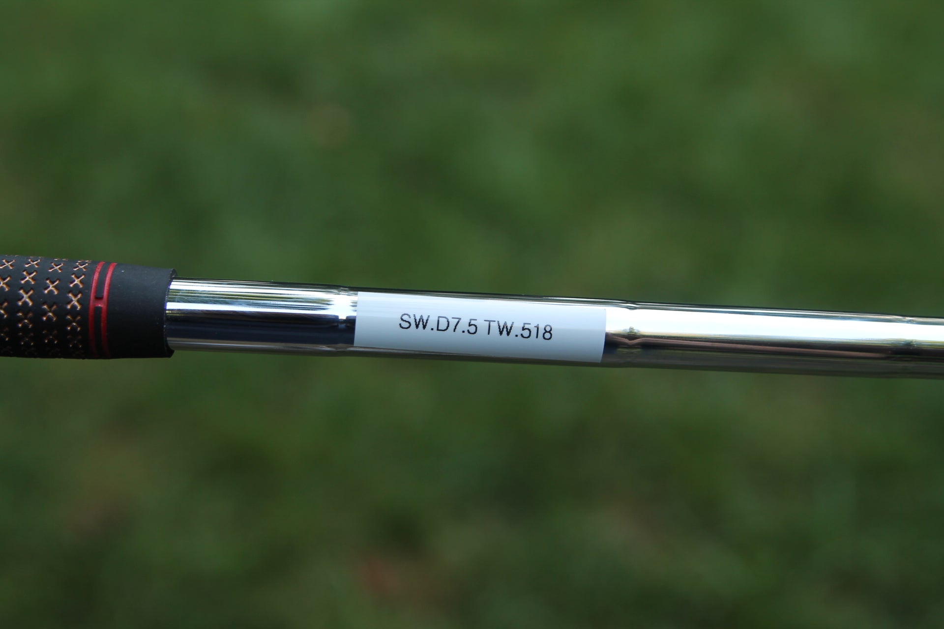 This putter is nearly face balanced and has full offset. This Juno is currently set to 35" and still has the tour ID/Spec Sticker attached. It can be bent to specs, so please put any modification instructions in the notes section during checkout otherwise we assume standard specs.