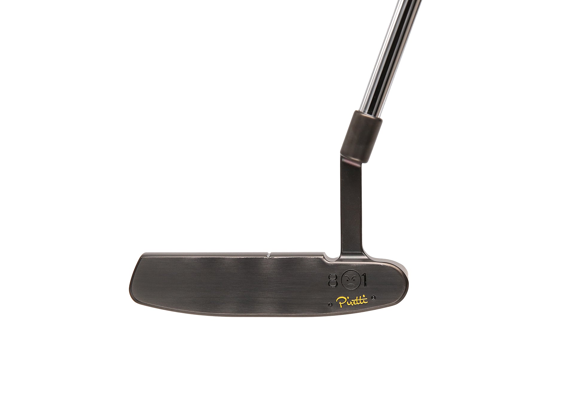 This beautiful Piretti 801 is made entirely of 303 Stainless Steel and features a sleek Black PVD finish. This putter has a skim milled face and several unique stampings. It also features a single topline, roll top and tour blank sole. This piece is brand new.