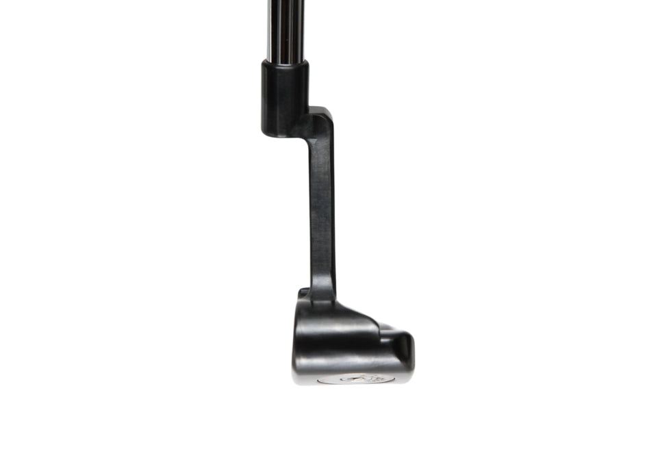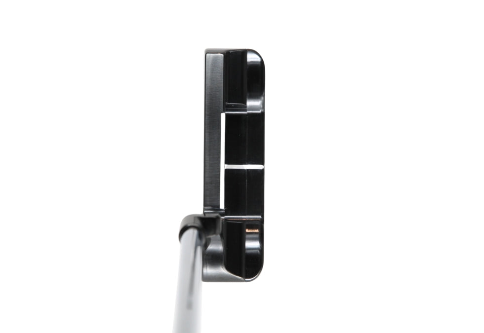 This beautiful Piretti 801T features a newly designed flat topline and is made entirely of 11L17 Soft Carbon Steel. This putter features a black oxide finish, plumbers neck and skim milled face. This is brand new and never used.