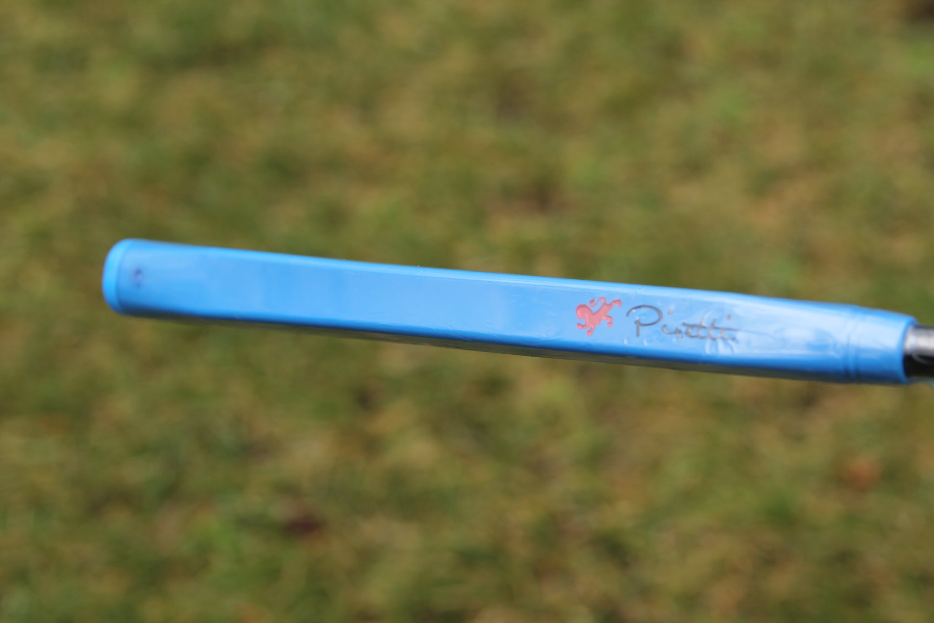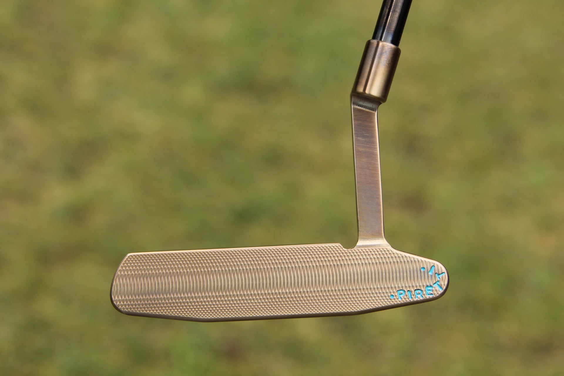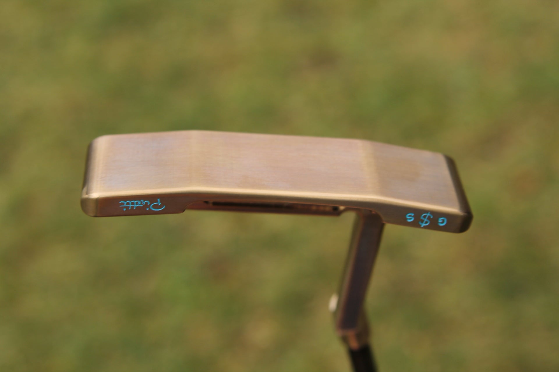 This breath taking Piretti Capri putter is made entirely of German Stainless Steel and features a unique champagne finish with a baby blue paint fill. This piece features several unique stampings in the cavity as well as the bumpers. Tri Sole with a single sight line, and a tour blank sole. This putter is brand new and never used.