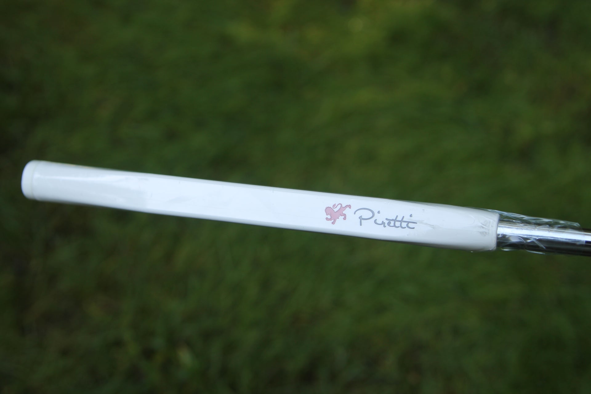 This putter is face balanced and full offset. This Teramo is currently set to 34" and comes with the White Limited Edition Headcover and a White Iomic Piretti Grip. This putter can be bent to specs, so please put any modification instructions in the notes section during checkout otherwise we assume standard specs.